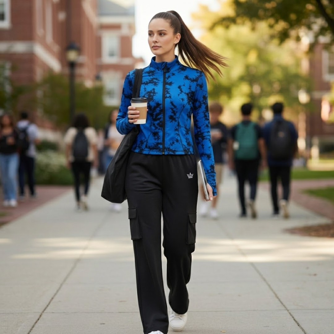 Versatile Design: Perfect for university life, travel, or casual city outings. The jacket provides a pop of color while the cargo pants offer a grounded, practical base.