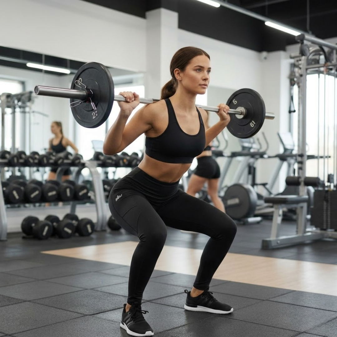 Sculpting Leggings: High-waisted, full-length leggings featuring a wide waistband for tummy control and a secure “stay-put” fit during movement.